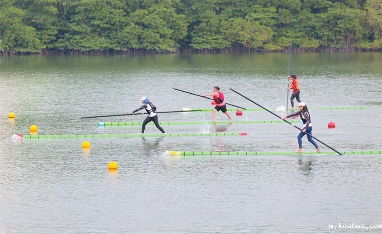 11月25日,三亚代表队龙舟项目运动员们奋力划桨加速前行。